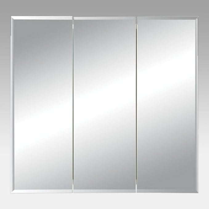 | Jensen Tri-View 48″ | Medicine cabinet | Recessed | Steel | Shared baths, wide view |