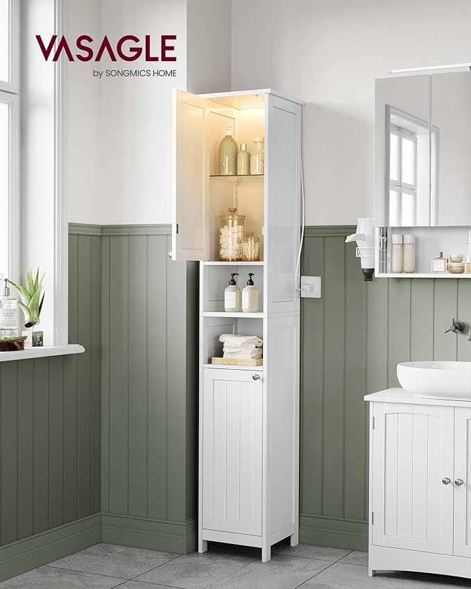 14. VASAGLE Tall Slim Bathroom Storage Cabinet with Lights