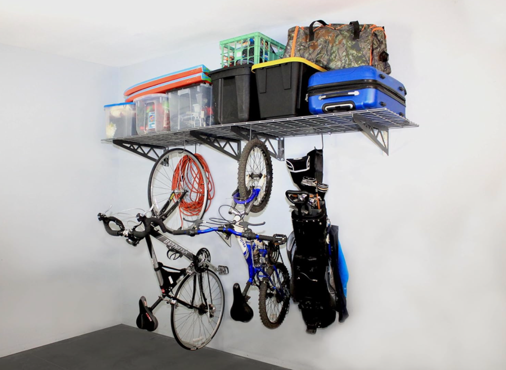 - Best overhead storage: FLEXIMOUNTS Overhead Garage Storage Rack — uses ceiling space to free up the floor.